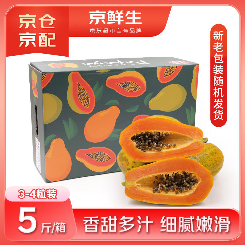 京鲜生 海南冰糖心木瓜净重5斤 3-4粒 单果600g起 生鲜礼盒