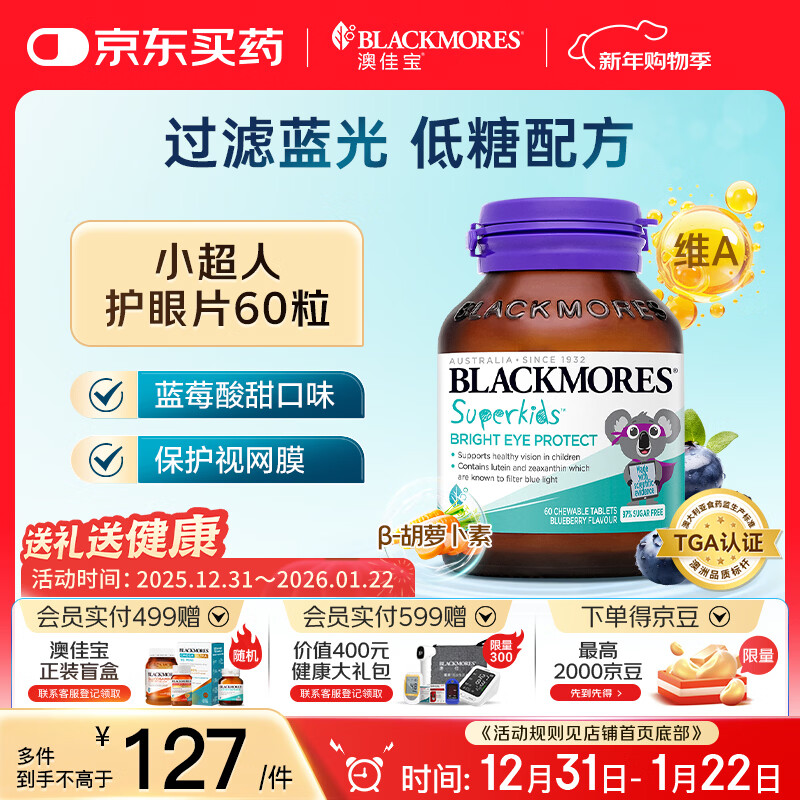 澳佳宝Blackmores叶黄素儿童护眼补锌维生素60片过滤蓝光青少年