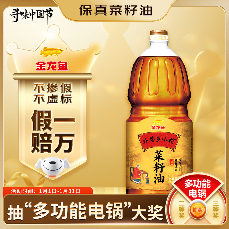 金龙鱼 食用油【保真菜籽油】非转基因 压榨 外婆乡小榨菜籽油 1.8L