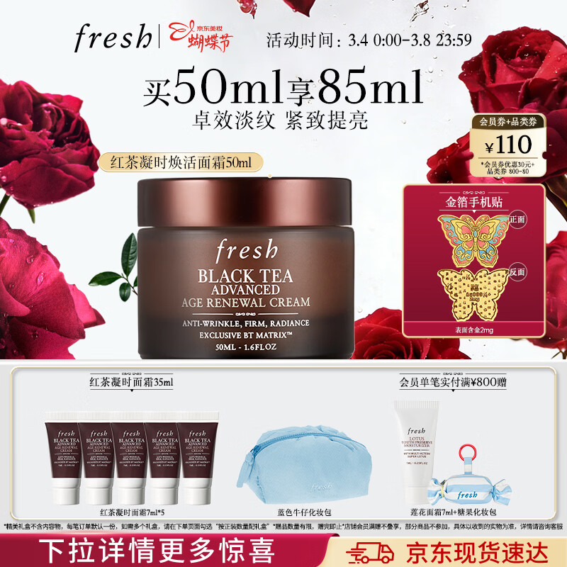 Fresh馥蕾诗红茶凝时焕活面霜50ml护肤品 生日38女神节礼物送女友