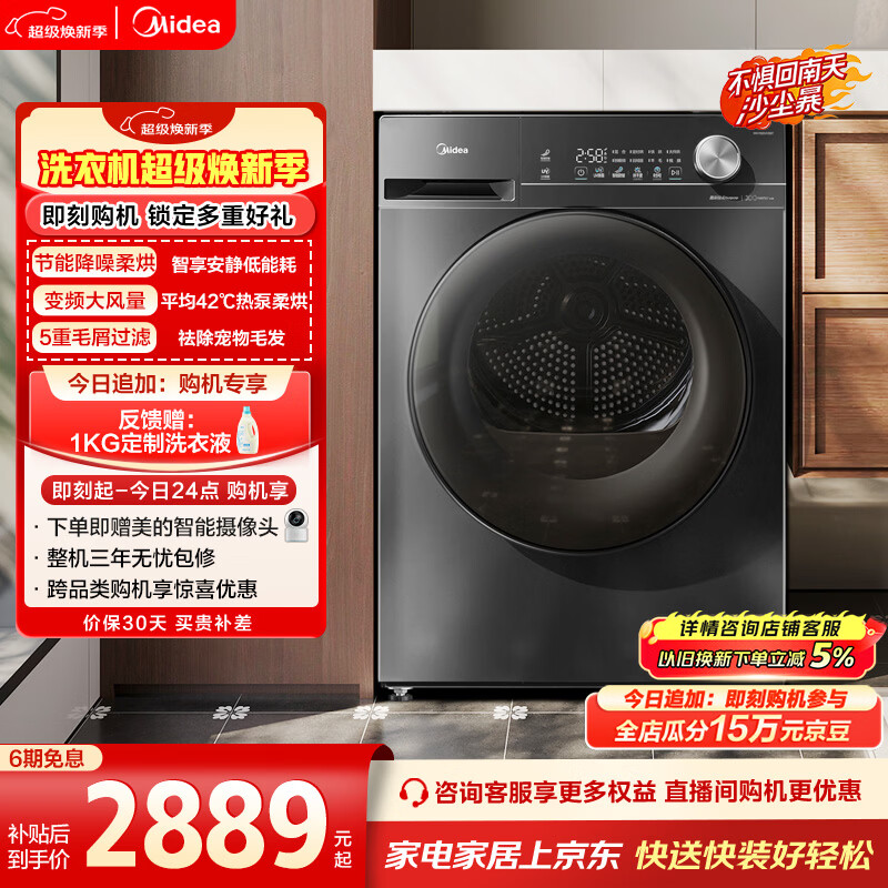 美的(Midea)热泵烘干机 10KG变频 除菌除螨 五层毛屑过滤 超薄大筒径 静音 MH100VH36T 家电以旧换新 京东自营