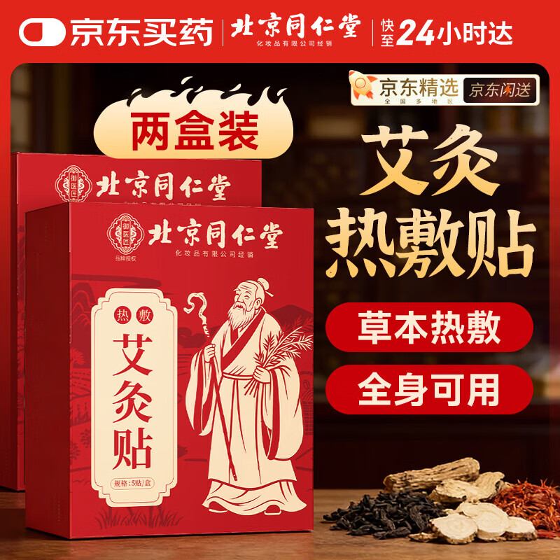 同仁堂艾灸贴艾草艾叶热敷贴膝盖颈椎肩颈热敷发热贴艾灸肚子腹部2盒装
