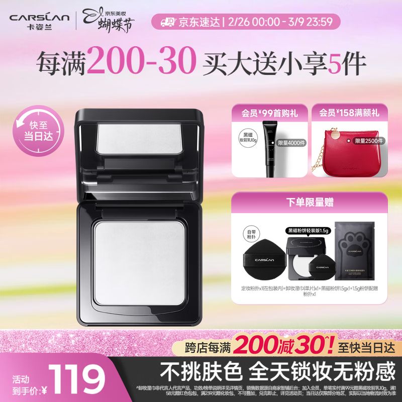 卡姿兰(Carslan)黑磁粉饼定妆控油蜜散粉遮瑕持久防汗不脱妆(透明色)8g女神节礼物