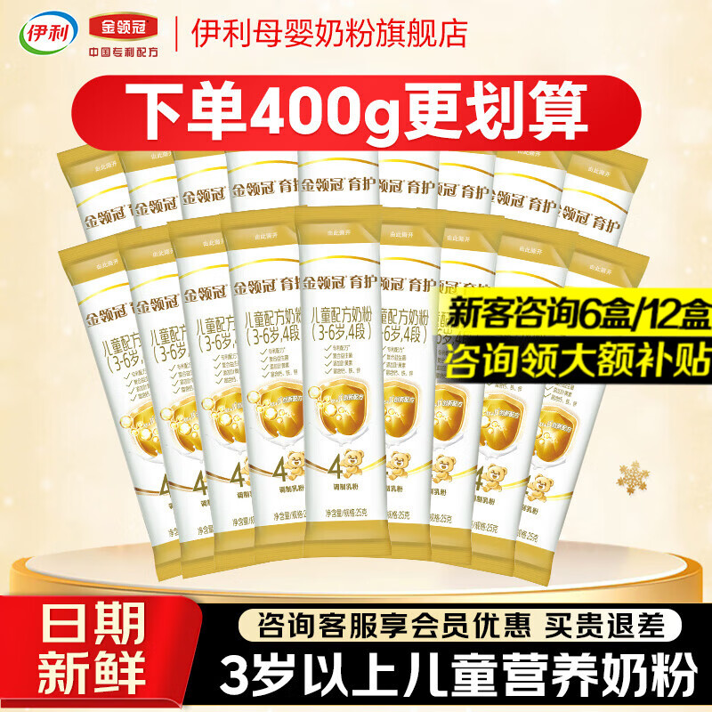 伊利金领冠育护4段400g 3-6儿童成长学生配方牛奶粉试喝 独立包装 (咨询客服领券更划算)25g*16条=400g