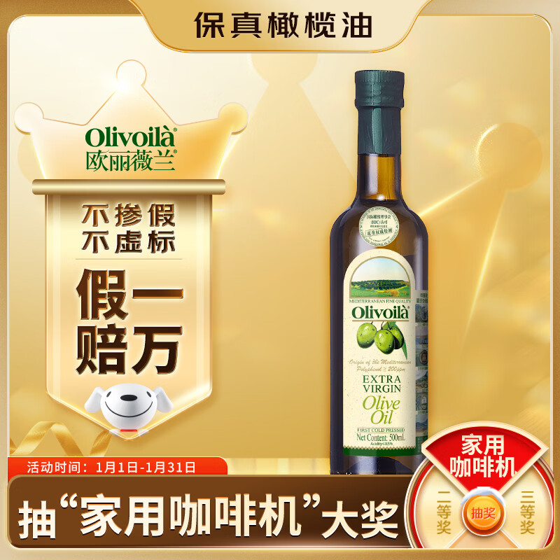 欧丽薇兰 Olivoila【保真橄榄油】食用油 特级初榨 压榨 橄榄油500ml