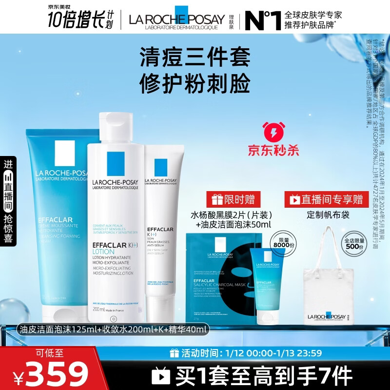 理肤泉清痘水乳洁面三件套控油收敛毛孔祛黑头油痘肌护肤品套装新年礼物