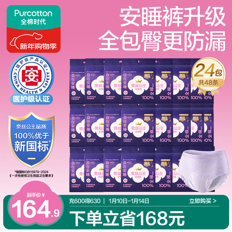 全棉时代【囤货特惠】奈丝公主纯棉安心裤安睡裤ML码48条箱裝京东自营