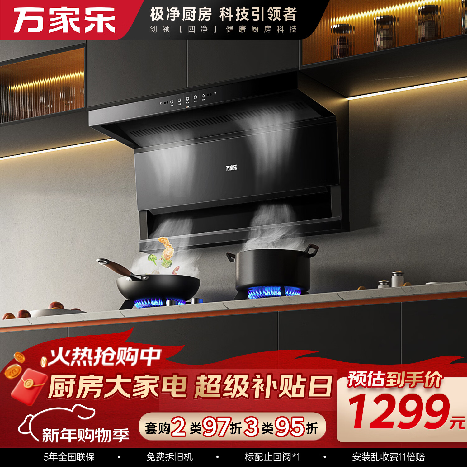 万家乐油烟机【小鲸喜TAK3】顶侧双吸油烟机不碰头23立方小尺寸大吸力小户型出租房公寓超薄平嵌抽油烟机