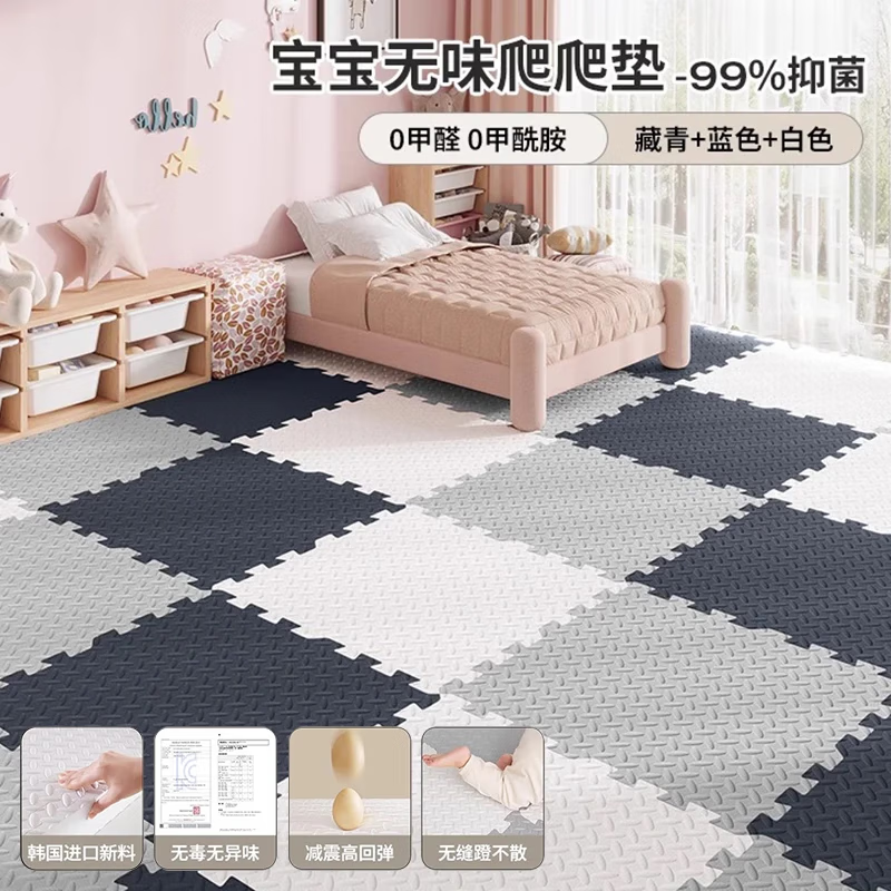 朗格拼接泡沫地垫婴儿童加厚家用爬爬垫宝宝爬行垫榻榻米海绵地铺垫子 藏青+蓝色+白-送边条 0甲醛 60*60*2.5cm特厚【16片/无甲醛】