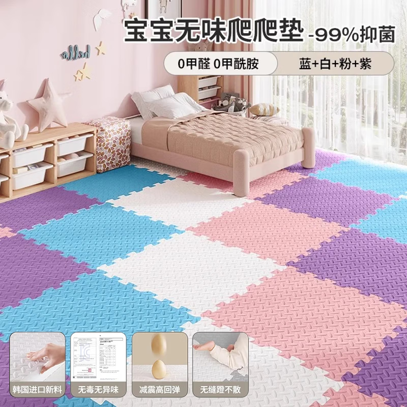 朗格拼接泡沫地垫婴儿童加厚家用爬爬垫宝宝爬行垫榻榻米海绵地铺垫子 蓝+白+粉+紫-送边条 0甲醛 60X60X1.2cm加厚【24片/无甲醛】