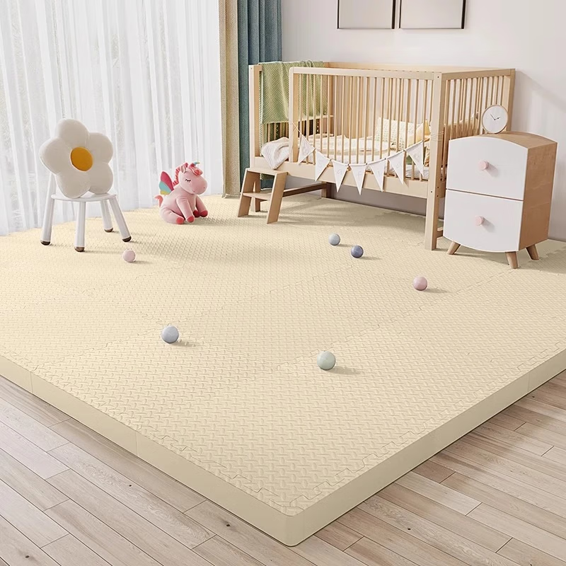 朗格拼接泡沫地垫婴儿童加厚家用爬爬垫宝宝爬行垫榻榻米海绵地铺垫子 米色-送边条 0甲醛 60*60*2.5cm特厚【16片/无甲醛】