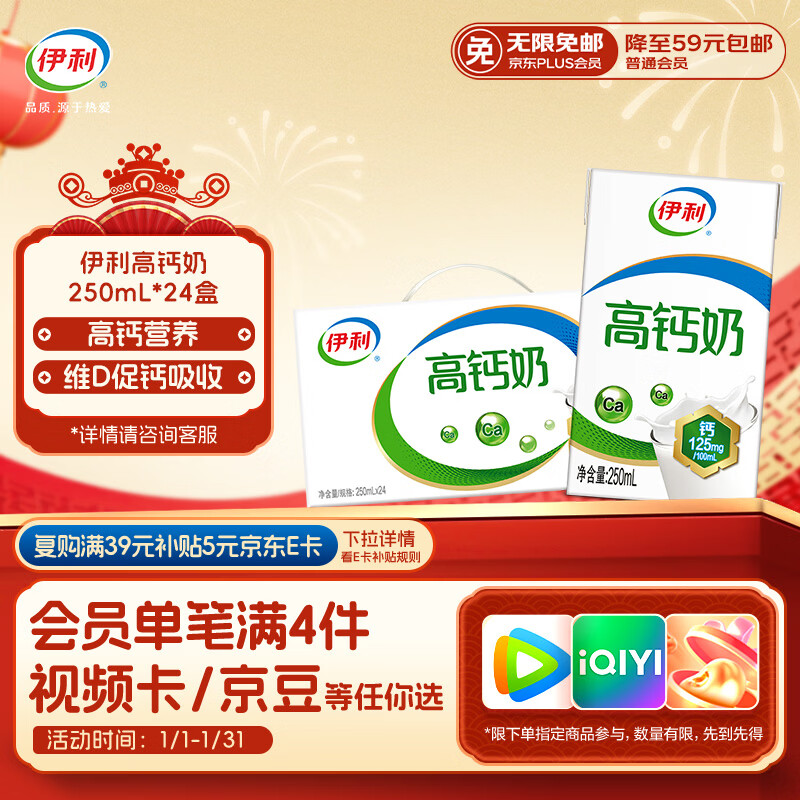 伊利高钙全脂牛奶整箱 250ml*24盒 早餐伴侣 礼盒装 10月底产