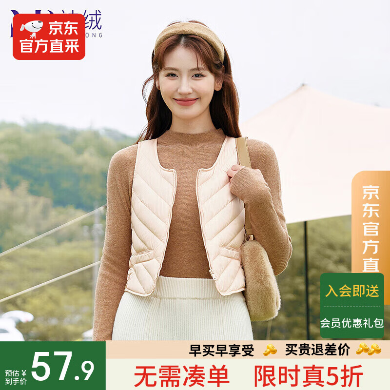 袂绒轻薄羽绒马甲女2025年新款无袖坎肩背心保暖外套 粉色 L