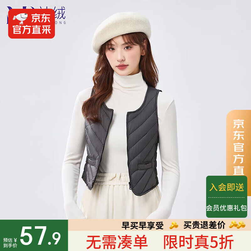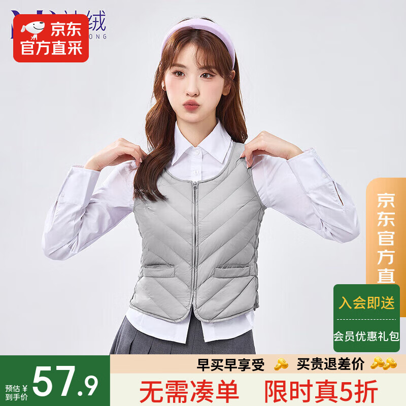 袂绒轻薄羽绒马甲女2025年新款无袖坎肩背心保暖外套 高级灰 S