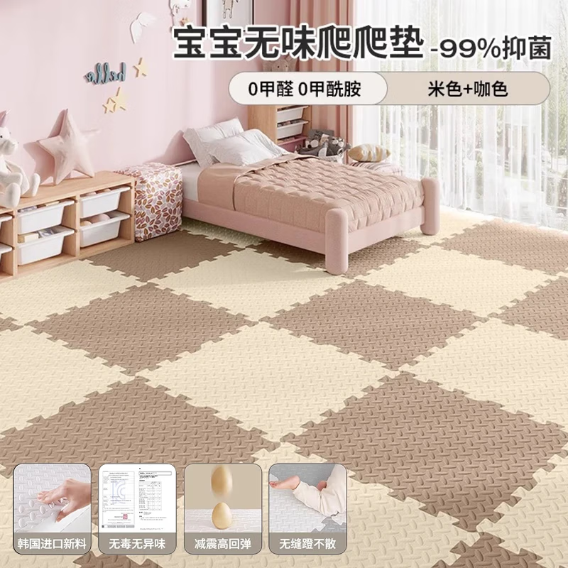 朗格拼接泡沫地垫婴儿童加厚家用爬爬垫宝宝爬行垫榻榻米海绵地铺垫子 米色+咖色-送边条 0甲醛 60*60*2.5cm特厚【20片/无甲醛】