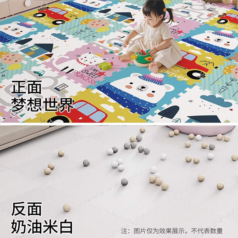 朗格xpe无味进口爬爬垫拼接泡沫地垫婴儿爬行垫宝宝爬爬垫拼图榻榻米 梦想世界+送边条【99%抗菌 0甲醛 】 60cmX60cmX2.5cm【12片装】(加厚)