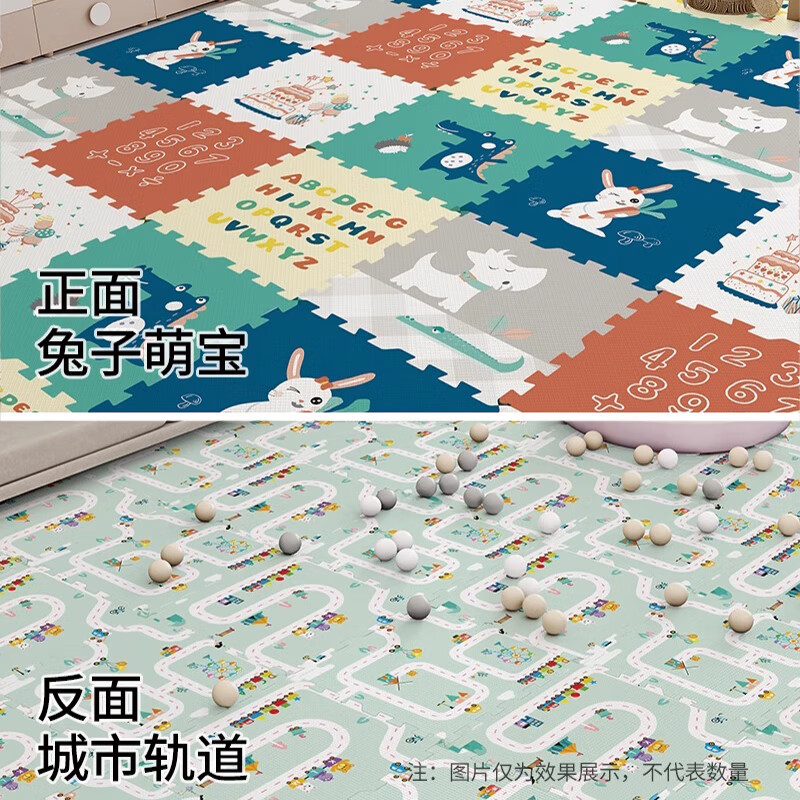朗格xpe无味进口爬爬垫拼接泡沫地垫婴儿爬行垫宝宝爬爬垫拼图榻榻米 兔子萌宝+送边条【99%抗菌 0甲醛 】 60cmX60cmX2.5cm【12片装】(加厚)