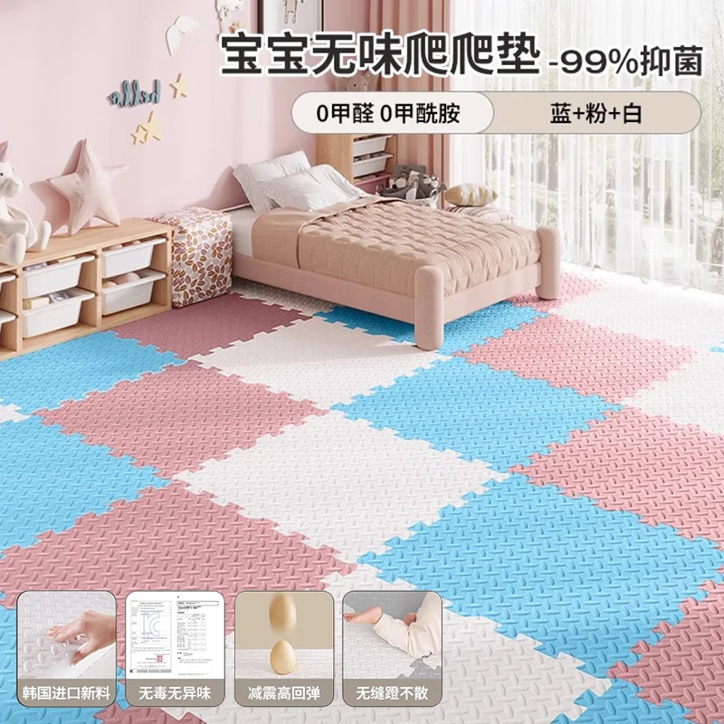 朗格拼接泡沫地垫婴儿童加厚家用爬爬垫宝宝爬行垫榻榻米海绵地铺垫子 蓝+粉+白-送边条 0甲醛 60*60*2.5cm特厚【20片/无甲醛】