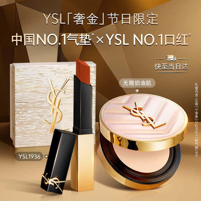 YSL圣罗兰口红底妆礼盒小金条1936+粉气垫化妆生日礼物送女友女神节礼物