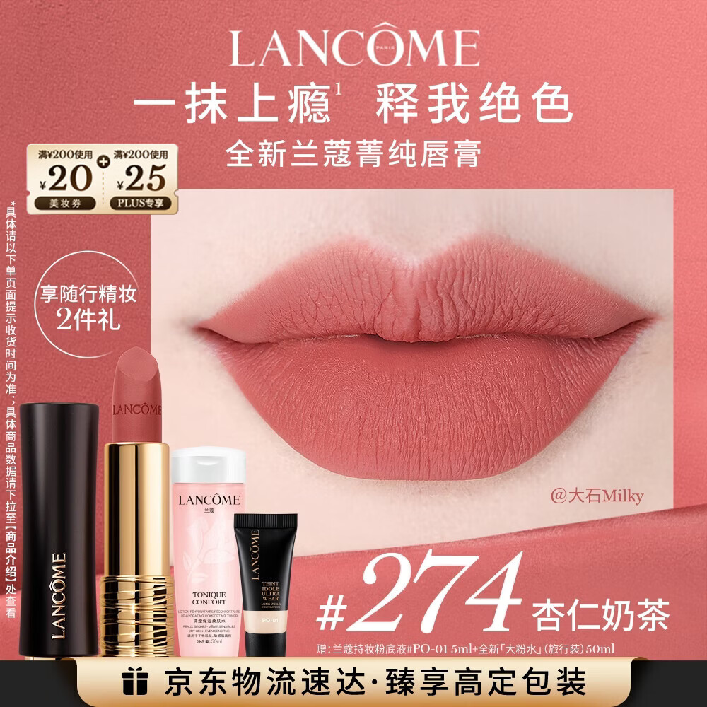 兰蔻274口红丝绒雾面哑光杏仁奶茶唇膏化妆品礼盒三八节女神生日礼物
