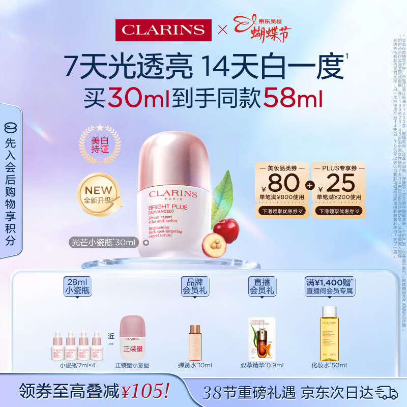 娇韵诗小瓷瓶30mlVC美白淡斑精华提亮护肤品化妆品38女神节礼物