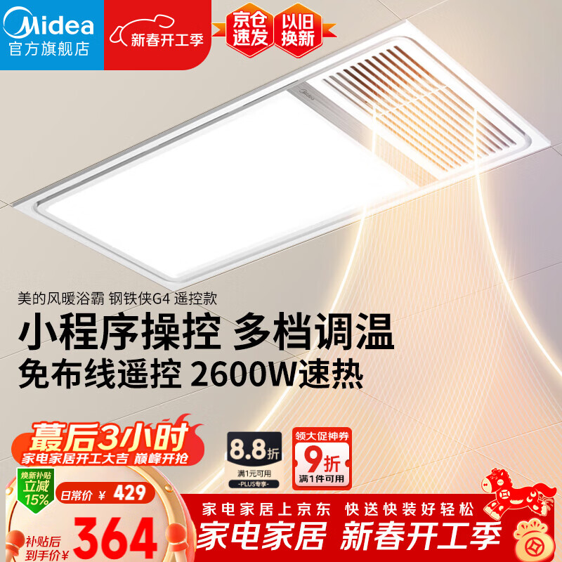 美的(Midea)风暖浴霸钢铁侠系列照明排气一体强暖暖风机遥控G4
