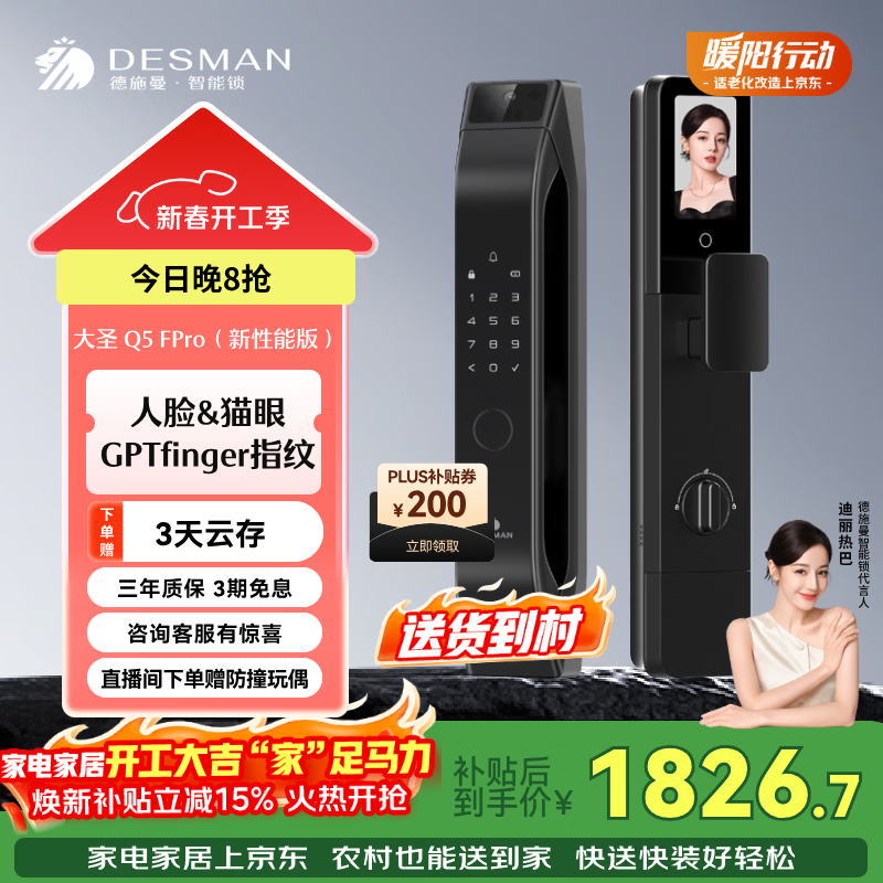德施曼(DESMAN)智能门锁人脸识别猫眼大屏指纹密码智能锁大圣Q5FPro(新性能版) Q5FPro新性能版