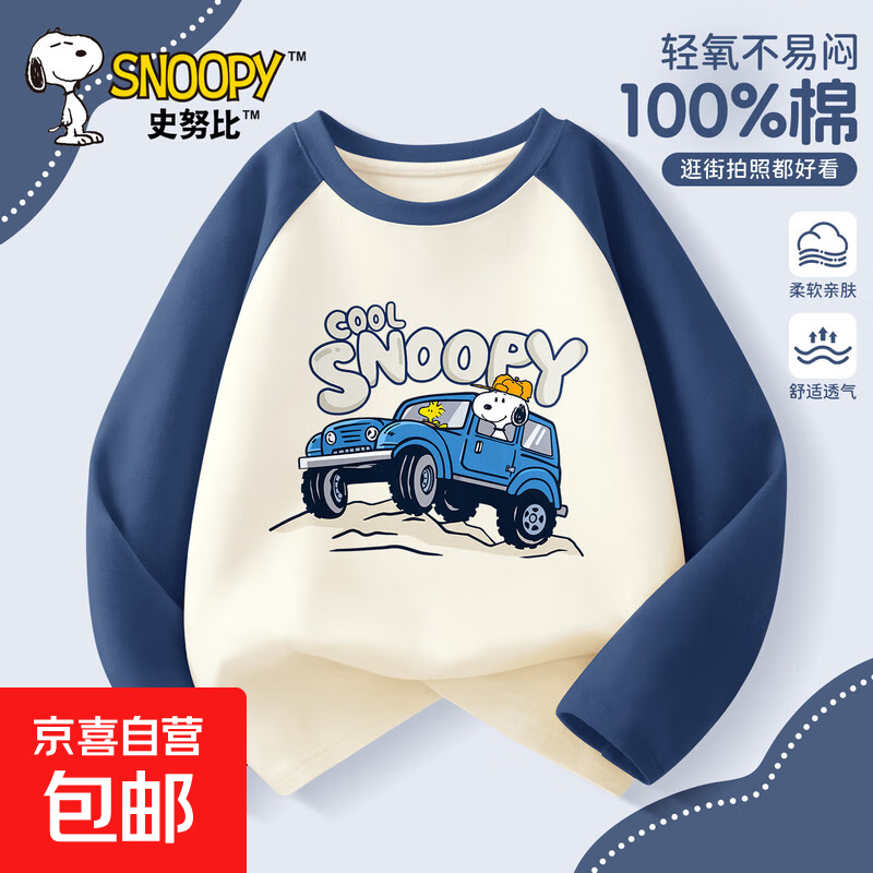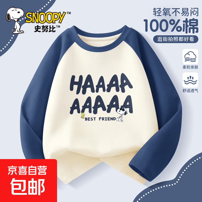 史努比(SNOOPY)男童长袖t恤春秋款2025新款纯棉童装宽松帅气上衣 哈哈努比灰蓝 120
