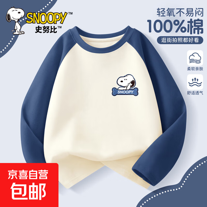 史努比(SNOOPY)男童长袖t恤春秋款2025新款纯棉童装宽松帅气上衣 骨头努比K灰蓝 110