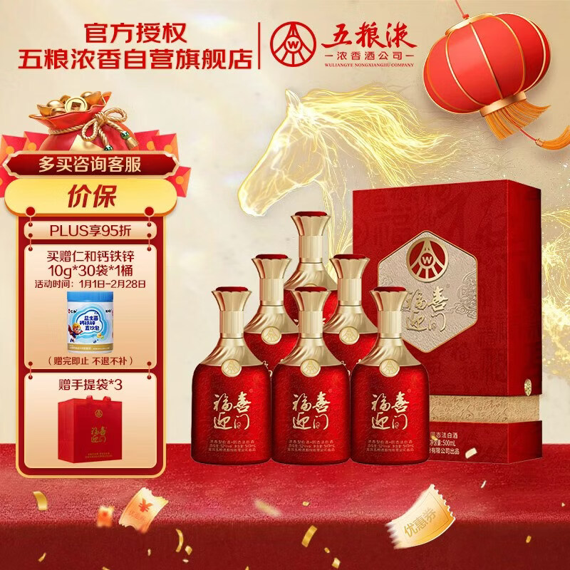 五粮液股份 福喜迎门 百福 浓香型白酒 52度500mL*6瓶 整箱装 年货送礼
