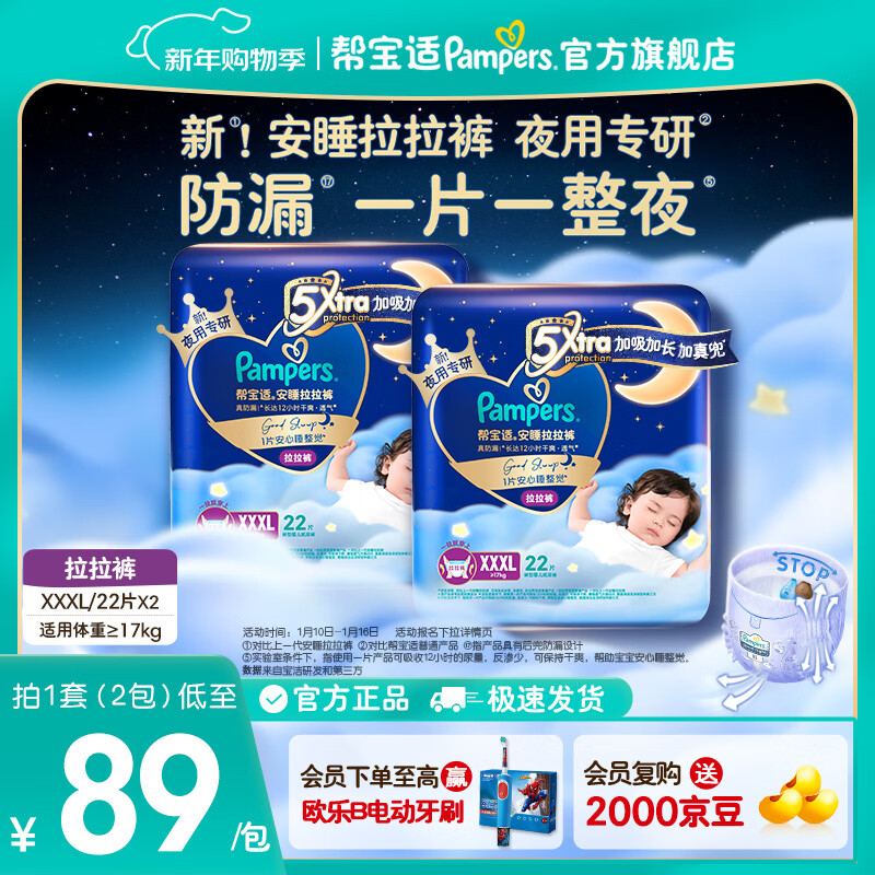 帮宝适【整觉王者】新安睡拉拉裤超薄透气 婴儿尿裤尿片尿不湿纸尿裤 安睡拉拉裤XXXL44片(≥17kg) 常规款