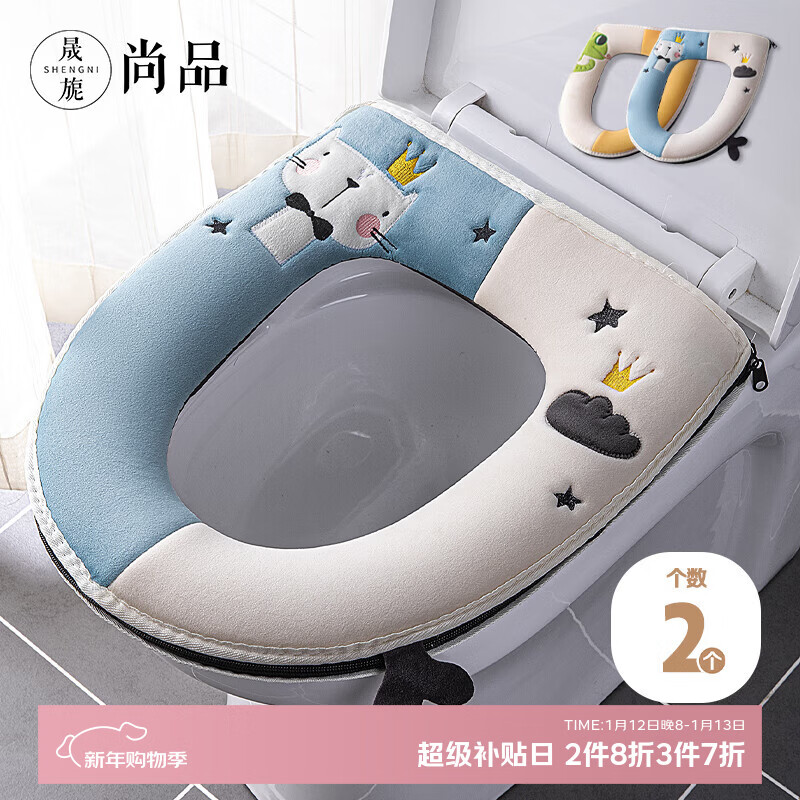 晟旎尚品 抗菌加厚马桶垫子 秋冬季防水坐便垫套可水洗拉链设计马桶圈坐垫