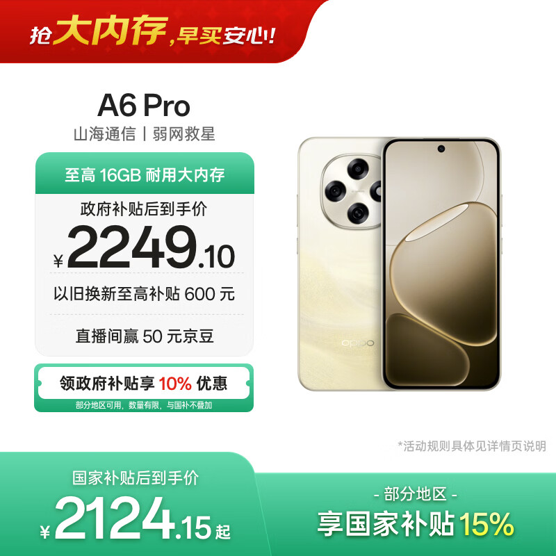 OPPO A6 Pro 16GB+512GB 流水生金 7000mAh大电池长续航 IP69防水 流畅抗摔耐用 5G智能手机 国家补贴