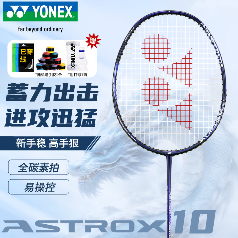尤尼克斯(YONEX)羽毛球拍天斧进攻高磅全碳素进阶比赛AX10藏青已穿线附球+手胶