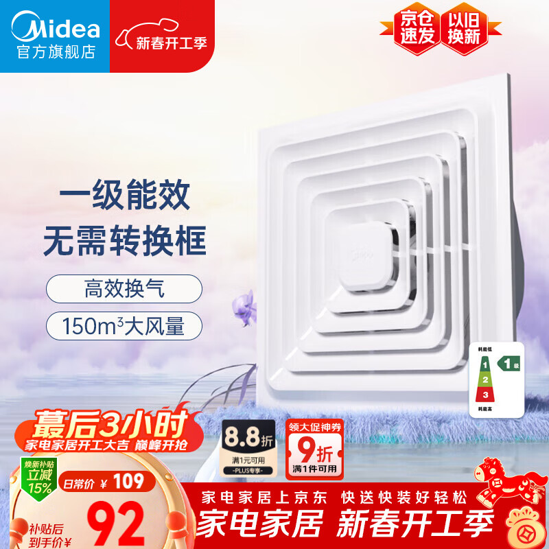 美的(Midea)【顶排】排气扇卫生间浴室集成吊顶换气扇强厨房劲换气1级能效