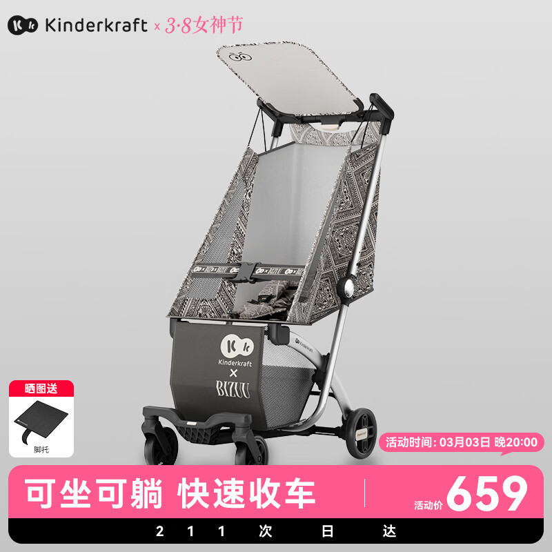 KinderKraftKK口袋推车可坐可躺一键收车0-3岁遛娃神器婴儿车轻便折叠海屿青