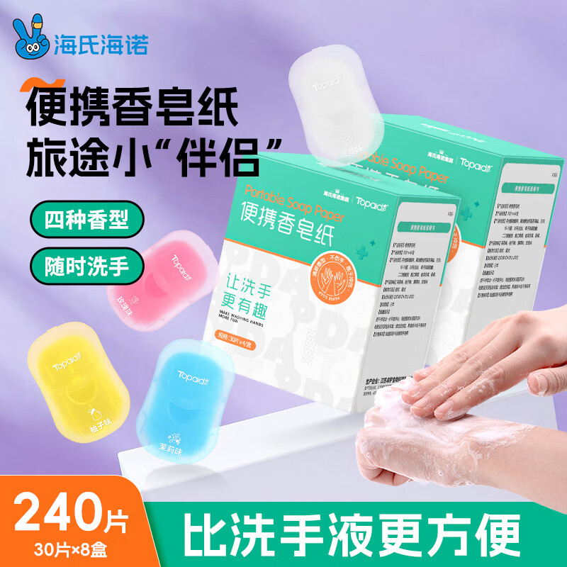 海氏海诺一次性香皂片便携式洗手片240片留香肥皂香皂纸洗手液旅行装儿童