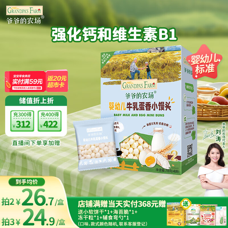 爷爷的农场婴幼儿牛乳蛋香小馒头78g 无添加宝宝零食 婴儿零食6-12个月