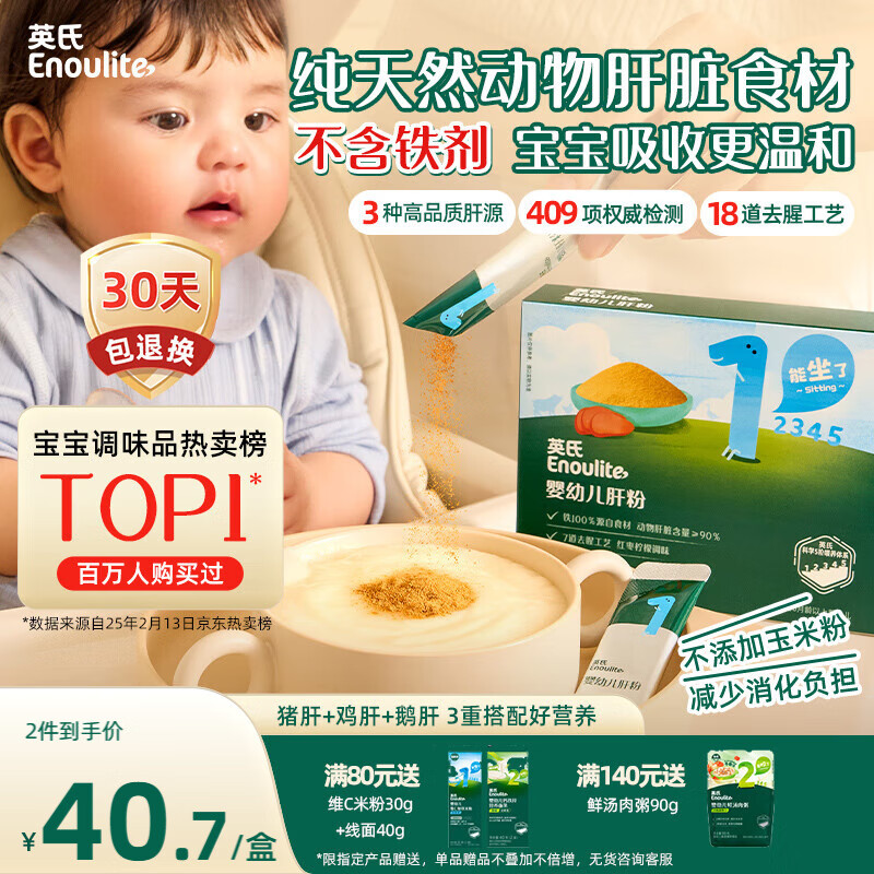 英氏婴幼儿强化铁猪肝粉54g宝宝辅食调味拌饭料6个月以上补铁不含盐