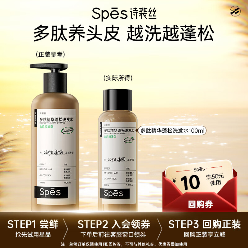 Spes诗裴丝多肽精华蓬松控油蓬蓬瓶洗发水100ml洗发露女/男士洗发膏
