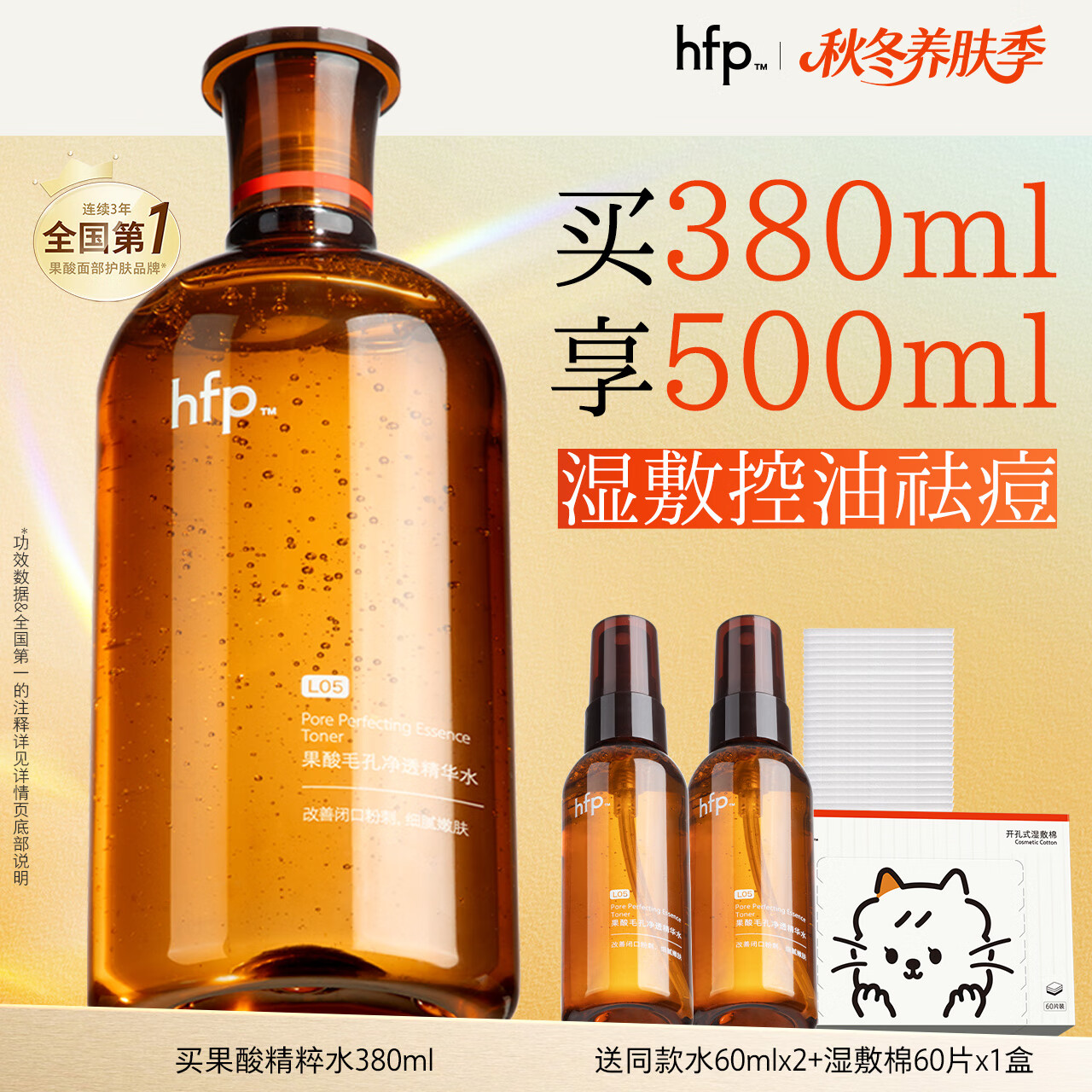 hfp果酸精粹水380ml爽肤水湿敷护肤水控油祛痘补水保湿男女刘涛同款