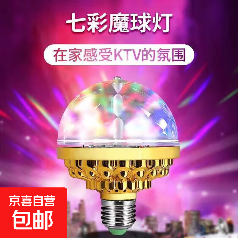 七彩旋转灯泡新年网红KTV闪光灯舞台光房间蹦迪氛围装饰宿舍魔球 圆形旋转七彩魔球-1个