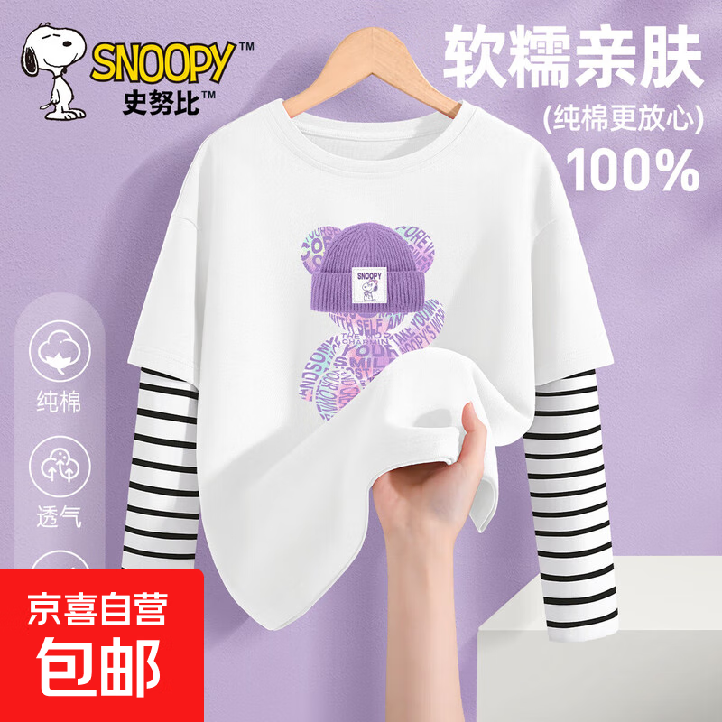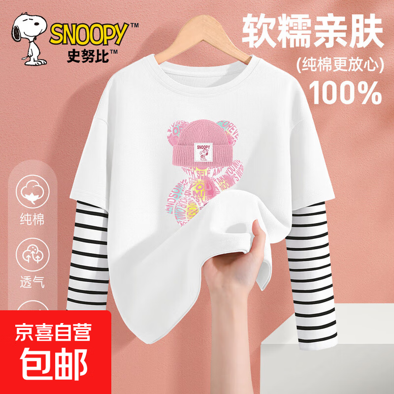 史努比(SNOOPY)女童t恤长袖春秋2025新款洋气女孩打底衫网红儿童上衣 Z炫努比白 130