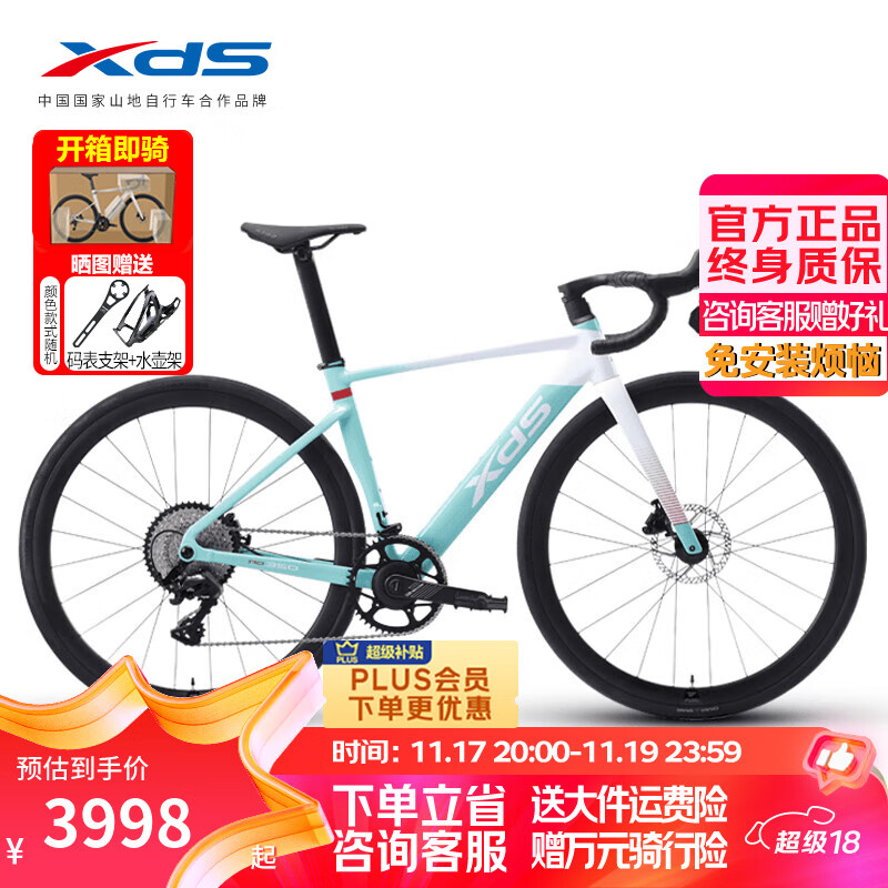喜德盛(xds)公路自行车25款AD350碳纤维前叉座管功率计曲柄气动车架健身单车 流光青-整车发货 540mm