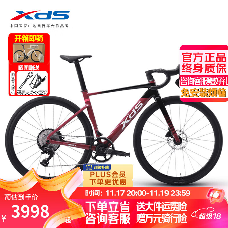 喜德盛(xds)公路自行车25款AD350碳纤维前叉座管功率计曲柄气动车架健身单车 车厘紫-整车发货 480mm