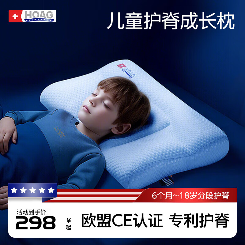 Hoag(霍格)儿童枕头1-3岁3-6岁宝宝专用四季通用婴儿枕头护颈神器 焕新款 H1段【合适6个月-3岁】 (不含填充棉包)