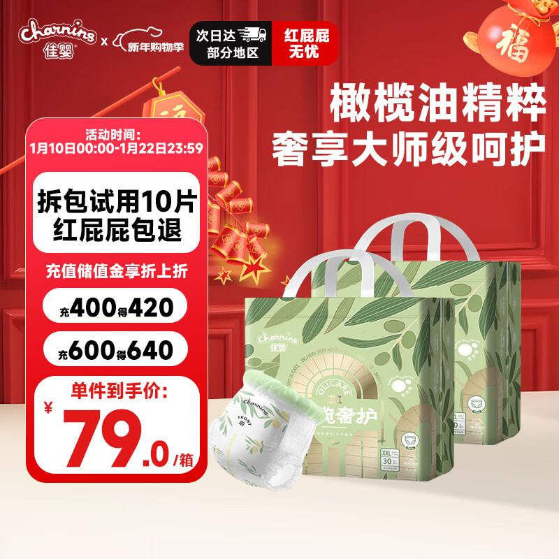 佳婴橄榄奢护拉拉裤XL码64片(8-14KG)婴儿尿不湿超薄男女宝宝学步裤