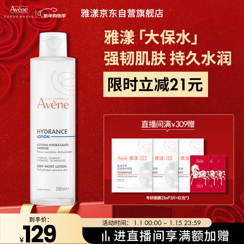 雅漾(Avene)恒润柔肤保湿水200ML 舒缓补水大保水爽肤水护肤水湿敷水礼物男女