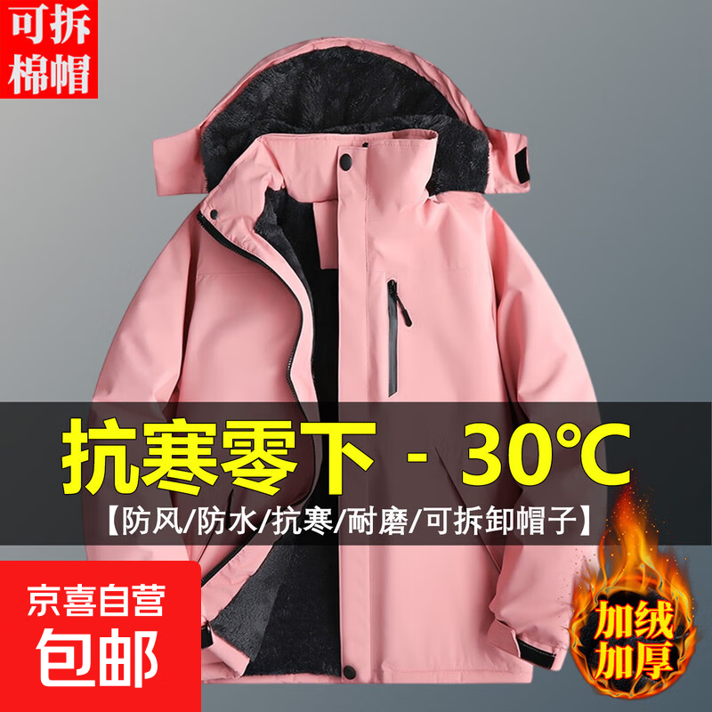 加绒加厚棉服男士秋冬季新款冲锋衣外套棉衣劳保棉袄工作服 A20冲锋衣【加绒加厚】粉色 3XL 约145-160斤可穿