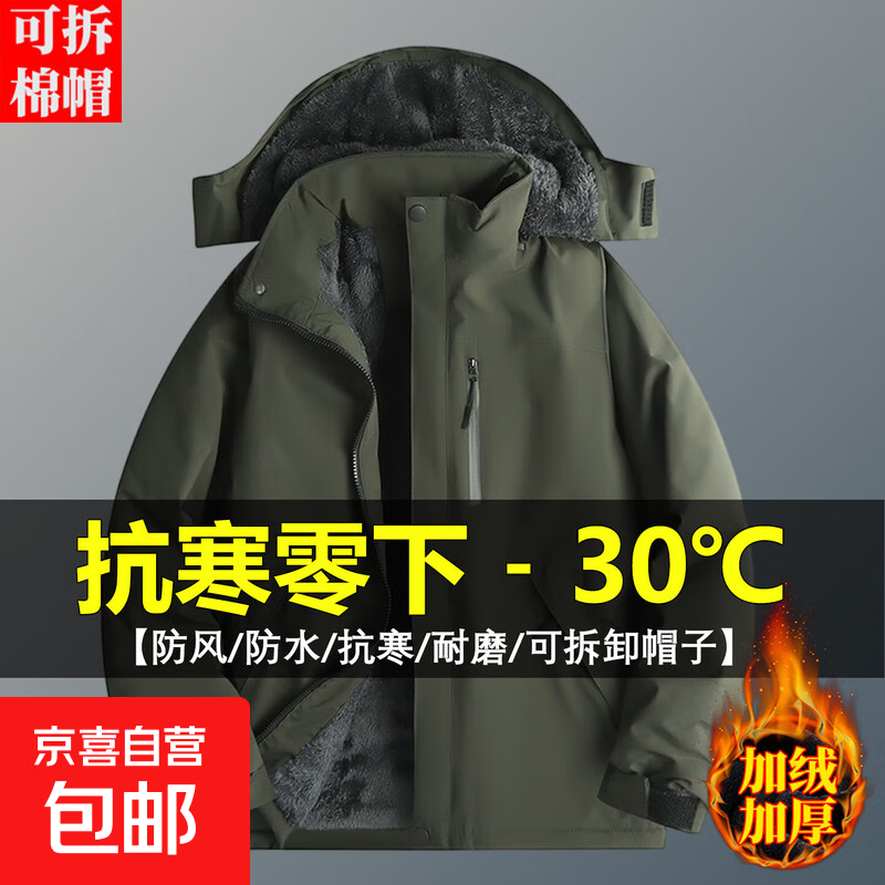 加绒加厚棉服男士秋冬季新款冲锋衣外套棉衣劳保棉袄工作服 A20冲锋衣【加绒加厚】军绿 M 约80-100斤可穿